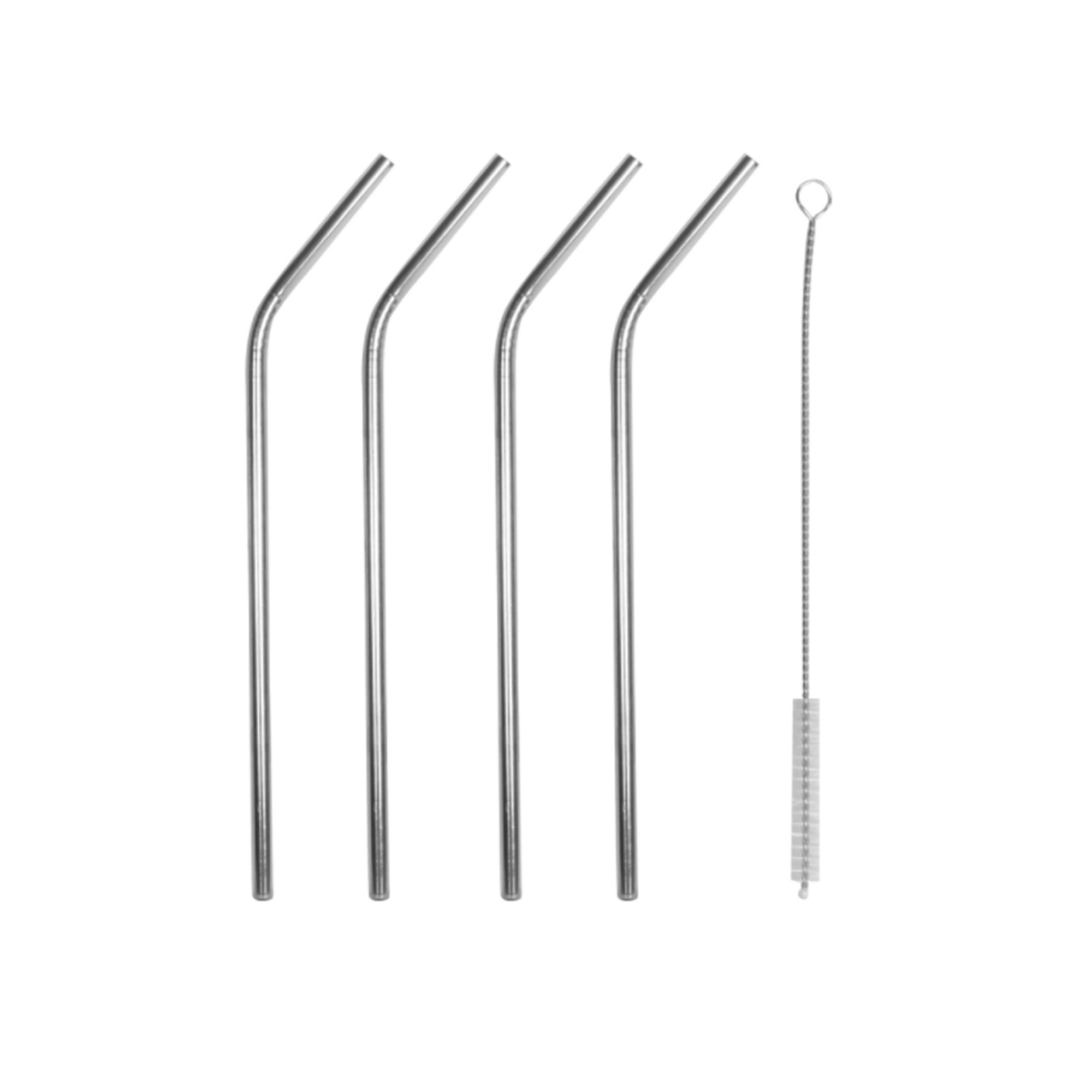 Σετ καλαμάκια ανοξείδωτα σε ασημί χρώμα. Το σετ περιλαμβάνει 4 καλαμάκια και 1 βουρτσάκι για τον καθαρισμό τους.