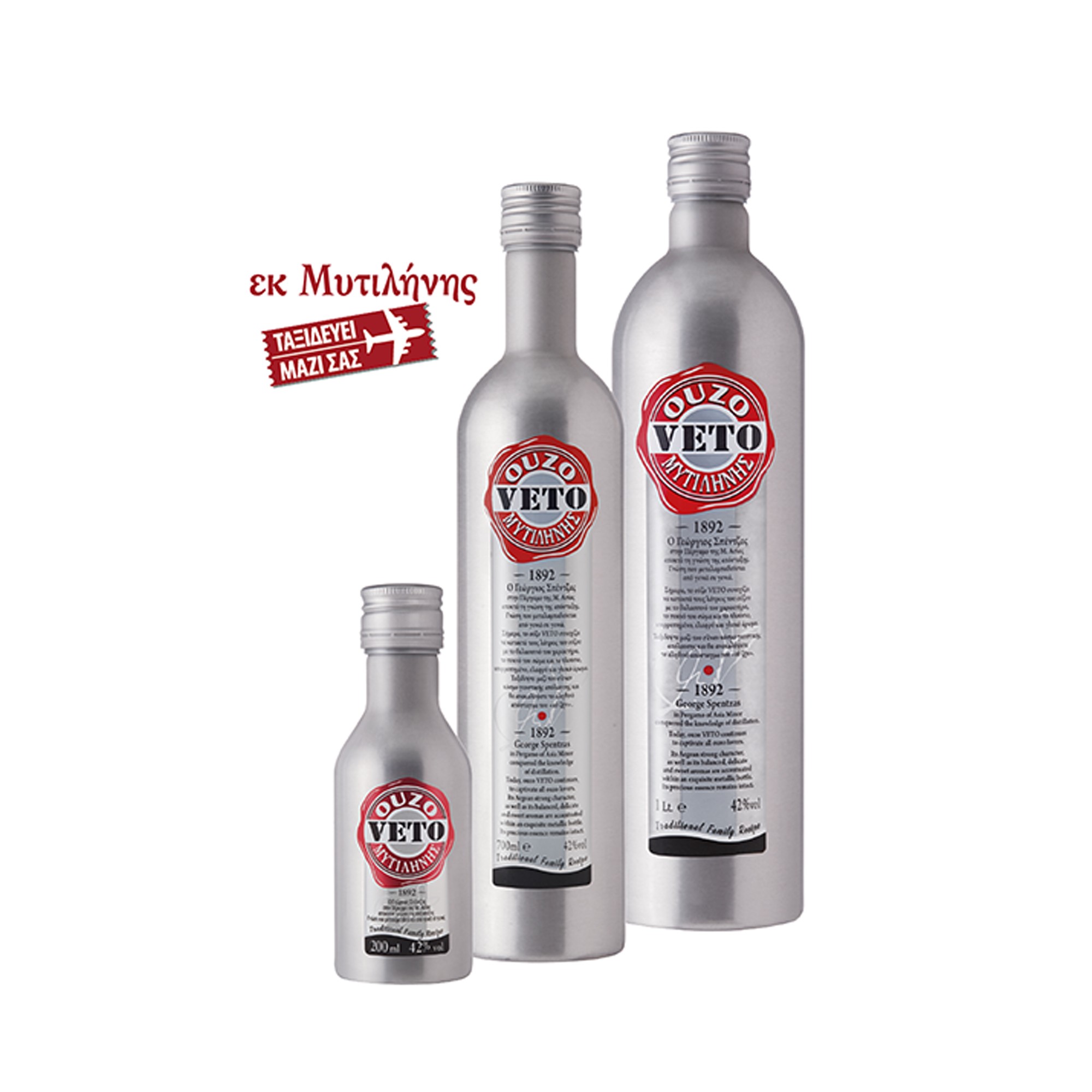 Η άθραυστη συσκευασία από ένα 100% ανακυκλώσιμο και φιλικό προς το περιβάλλον υλικό, συνδυάζει ιδανικά το μειωμένο βάρος με την ασφαλή μεταφορά.Η προστασία από την UV ακτινοβολία και από το ηλιακό φως, βοηθούν το ευαίσθητο ούζο VETO να διατηρεί αναλλοίωτα όλα τα πολύτιμα χαρακτηριστικά του.Το Ouzo Veto Metallic είναι το πρώτο στην Ελλάδα για το οποίο δόθηκε άδεια από το Γενικό Χημείο του κράτους για την εμφιάλωση και εμπορία σε μεταλλικούς περιέκτες.Ταξιδέψτε μαζί του σ’ έναν κόσμο γευστικής απόλαυσης και θα ανακαλύψετε το αληθινό απόσταγμα του “εύ ζήν”.