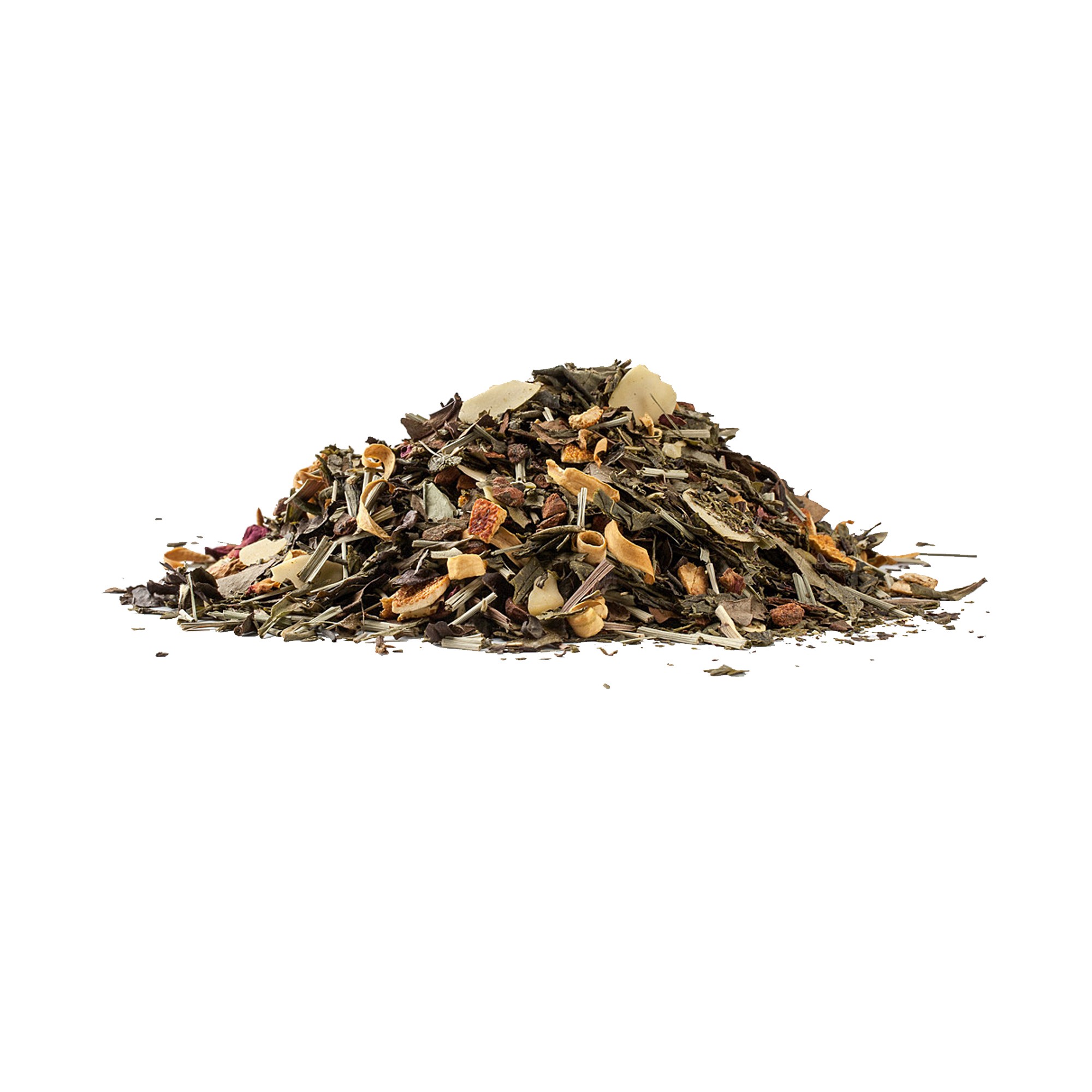 Λευκό τσάι με κανέλα, φλούδες πορτοκαλιού, αμύγδαλα, λεμονόχορτο, πράσινο τσάι, μαύρο τσάι, λουλούδια πορτοκαλιάς και τριαντάφυλλου. Ελαφρύ με έντονα αρώματα.
