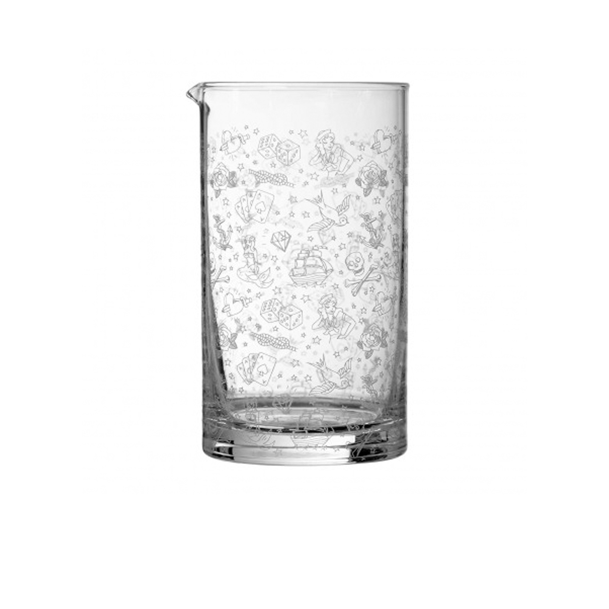 Χειροποίητο δοχείο ανάδευσης, χωρητικότητας 600ml. Είναι κατασκευασμένο από υψηλής ποιότητας καθαρό γυαλί, διακοσμημένο με χαραγμένα Old School Tattoo σχέδια που εντυπωσιάζουν. Συμπληρώνει τη συλλογή των εργαλείων Tattoo και είναι Ιδανικό για να δώσει μία ρετρό αισθητική σε κάθε μπαρ.