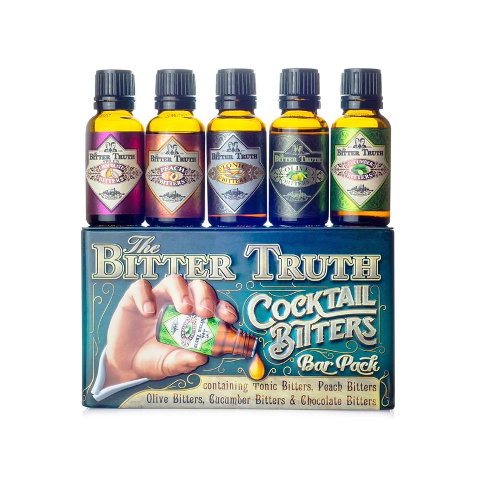 Η συσκευασία περιέχει 5 φιαλίδια των 20ml με τα ακόλουθα Bitter Truth Bitters:
